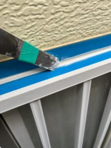 ヘラを使用しながら、シーリング材の表面を平らにならしていきます。