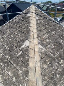 スレート屋根にお住まいでしたが、「屋根材が剥離しているように見える。一度見てほしい」とのご依頼をいただきました。