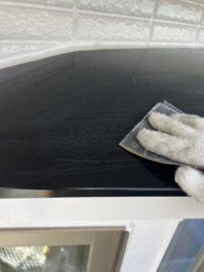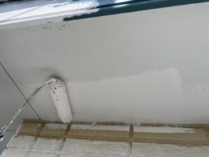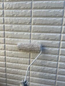 まずは、外壁の表面のでこぼこをなくし、上塗り材の密着性を高める下塗りから塗っていきます。