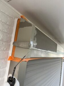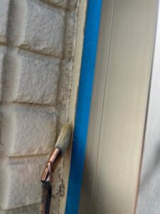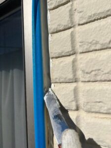 必要のない部分にコーキング材が付着しないよう、養生テープで周囲を囲んでから、最初にプライマーとよばれる接着剤のようなものを塗っていきます。