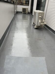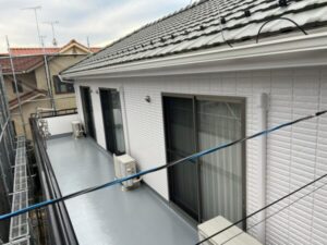 外壁塗装に加え、ベランダは床面と外壁の間にクラックがあったのでトップコート再塗装いたしました。