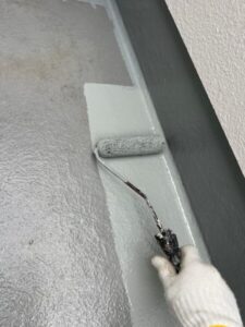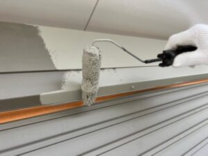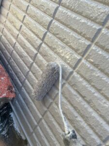 まずは、外壁の表面のでこぼこをなくし、上塗り材の密着性を高める下塗りから塗っていきます。