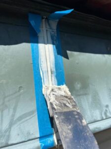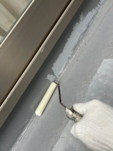 必要のない部分にコーキング材が付着しないよう、養生テープで周囲を囲んでから、最初にプライマーとよばれる接着剤のようなものを塗っていきます。