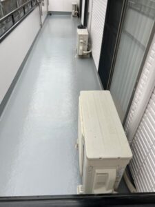 外壁塗装に加え、ベランダは床面と外壁の間にクラックがあったのでトップコート再塗装いたしました。