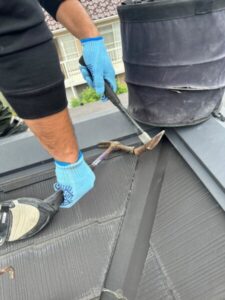 貫板の上から新しい棟板金を設置します。
