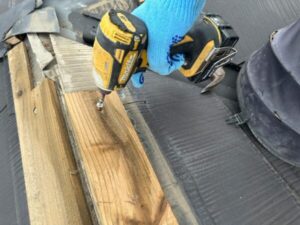 棟板金の中には「貫板」とよばれる、このような板が設置されています。