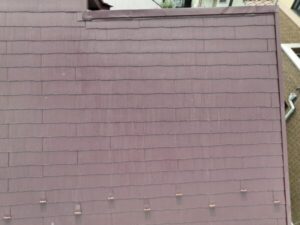 スレートの屋根材は、セメントが主成分で屋根そのものに防水機能がないため、定期的に表面の塗装をおこなうことで、雨を弾く防水機能を持たせています。