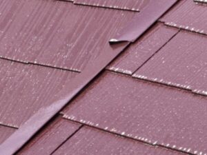 縁切りは、塗装した後に、屋根材同士の隙間を塞いで残っている塗料をきって、隙間を確保することですが、これを怠ると、内部に水分が溜まったままの状態が続くことに。