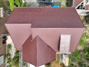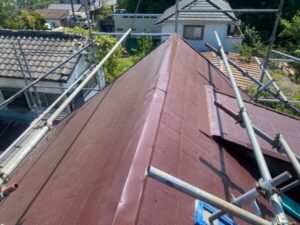 カラーも既存屋根に似たの色味のワインレッドを選んでいただいただき、もとの雰囲気を壊さない、温かみのある屋根になりました。