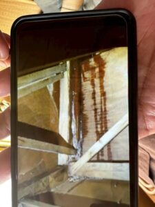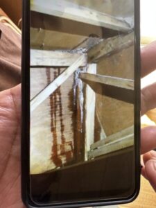 上から垂れてきており、完全に屋根からの雨漏りです。