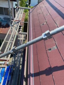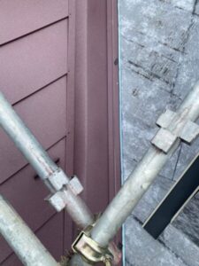 作業員の安全を確保するためでもありますが、足場を設置することで、安定し、作業を丁寧におこなうことができます。