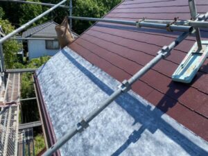 しかしながら、こちらのお住まいではその縁切りがされておらず、屋根材全てが塗料によってほぼ密封されているような状態でした。