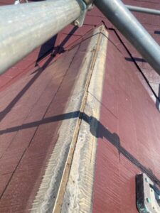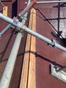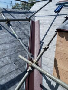 カバー工法では既存屋根をそのままに、上から新しい屋根材を設置しますが、この最上部の「棟板金」があると、ぴったりと上にのせることができません。