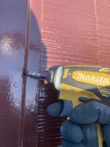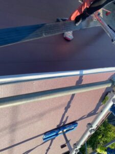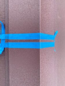 通常、塗装後この屋根材を重ねている部分にタスペーサーと呼ばれるカッターのような器具を隙間に入れ込み、「縁切り」の作業をおこないます。