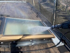 まずは今回塗装させていただくすべての面にくまなく高圧洗浄をおこなっていきます。