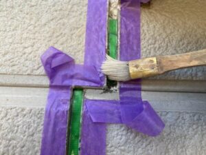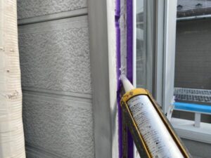 接着剤の役割をするプライマーを塗り、コーキング材を充填します。