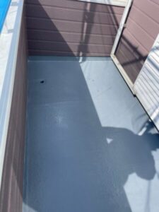 ベランダは防水層を形成する防水工事はおこなわず、防水層を保護するトップコートのみ塗り替えいたしました。