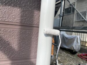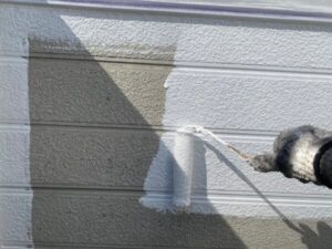 外壁塗装も3回の重ね塗りで、まずは下塗りから。