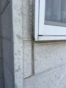 コーキング部分も硬化し、ひび割れ、剥離が起こっているのがわかります。